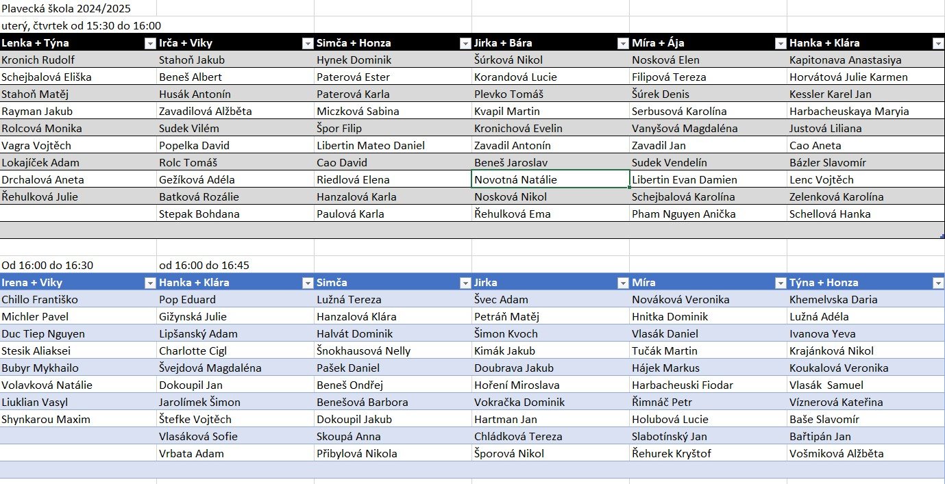 Rozdělení dětí do skupin níže po rozkliku tohoto odkazu, případní nováčci či náhradnící prosím volat p. Koutníkové 602 257 327